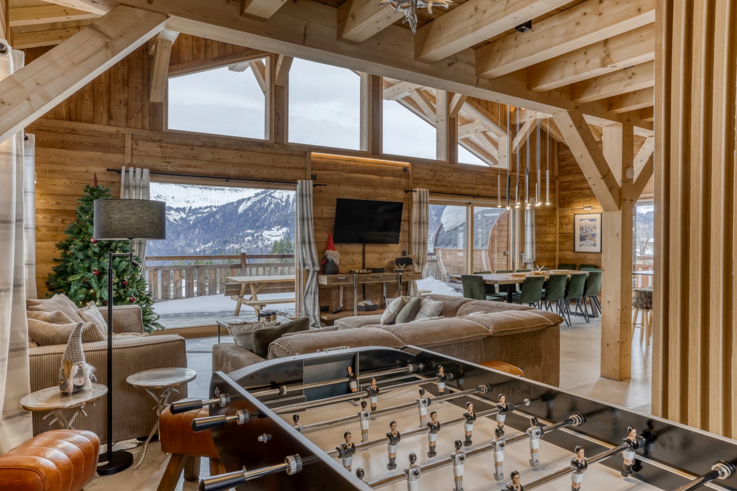 Au coeur du Val d'Arly, ce chalet de 155 m² sur 3 niveaux mêle authenticité savoyarde et confort moderne. Il accueille jusqu'à 12 personnes avec 5 chambres spacieuses, idéal pour des séjours en famille ou entre amis. La pièce de vie lumineuse, dotée d'une belle hauteur sous plafond et de poutres apparentes, offre une vue imprenable sur le massif des Aravis grâce à ses larges baies vitrées. L'intérieur combine bois naturel et design contemporain pour une ambiance chaleureuse et élégante. Après une belle journée sur les pistes, profitez d'un moment de détente unique dans le sauna extérieur. À seulement 650 m du centre du village et des pistes de l'Espace Diamant, il bénéficie d'un emplacement privilégié pour profiter pleinement de la montagne, été comme hiver. Cinq places de stationnement privatives complètent ce bien.