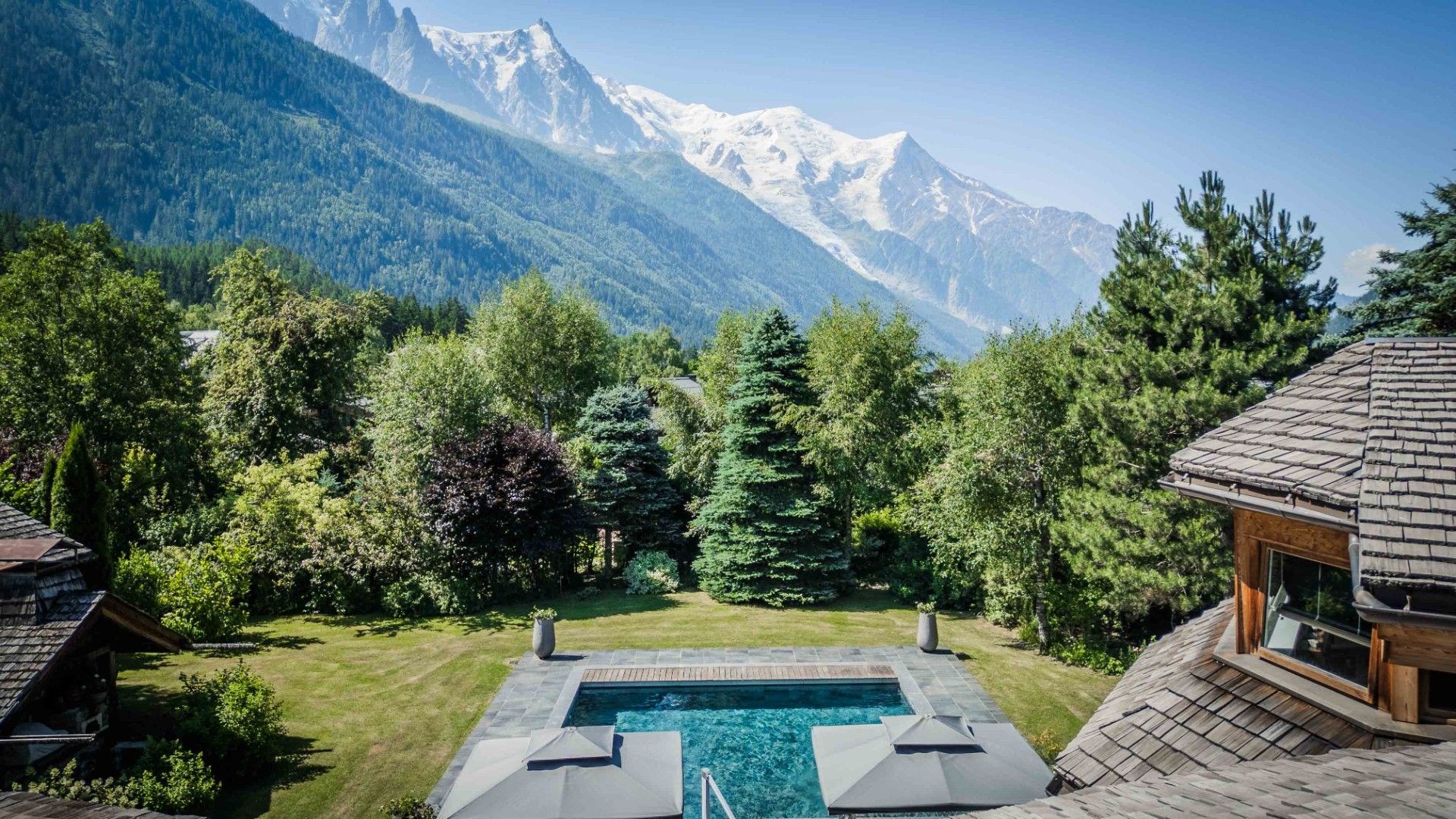 Rare opportunité à Chamonix ? Chalet d'architecte d'exception face au Mont-Blanc Dans le secteur prisé des Tines, découvrez ce somptueux chalet en rondins de 610 m² de surface utile (dont 467 m² habitables), alliant le charme authentique du bois massif à des prestations haut de gamme. Édifié sur une parcelle d'environ 2 000 m², il offre des volumes spectaculaires et une vue panoramique dégagée sur le massif du Mont-Blanc. Son vaste espace de vie de 123 m² baigné de lumière s'ouvre sur une terrasse plein sud, invitant à la contemplation. Le chalet comprend cinq chambres dont une suite parentale, un espace bien-être complet avec piscine intérieure chauffée, jacuzzi extérieur, sauna, hammam, salle de sport et home cinéma. Un mazot indépendant, entièrement aménagé avec terrasse et jardin privatif, vient parfaire ce bien d'exception. Visuels non contractuels.