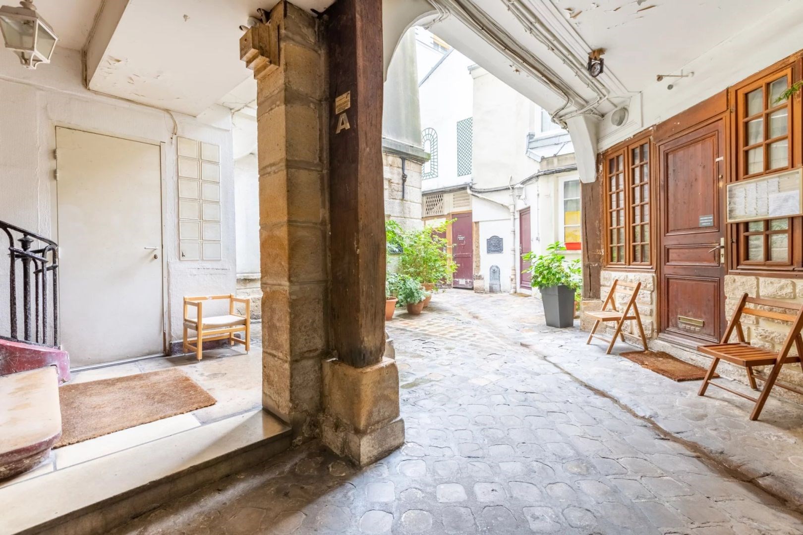 Saint-Sulpice, un parfait pied à terre avec de beaux volumes, situé dans une des rues emblématiques de Saint-Germain-des-Prés, comprenant: une entrée, un séjour avec mezzanine, une cuisine, une chambre et une salle de bains avec toilettes. Appartement au calme d'une surface de 76 m² au sol et 63. 90 m² Loi Carrez avec beaucoup de cachet. Très belle hauteur sous plafond et poutres apparentes. Situé au 1er étage par escalier dans un immeuble du XVII -ème siècle. Travaux à prévoir. Une cave complète ce bien rare. (4.53 % honoraires TTC à la charge de l'acquéreur.)