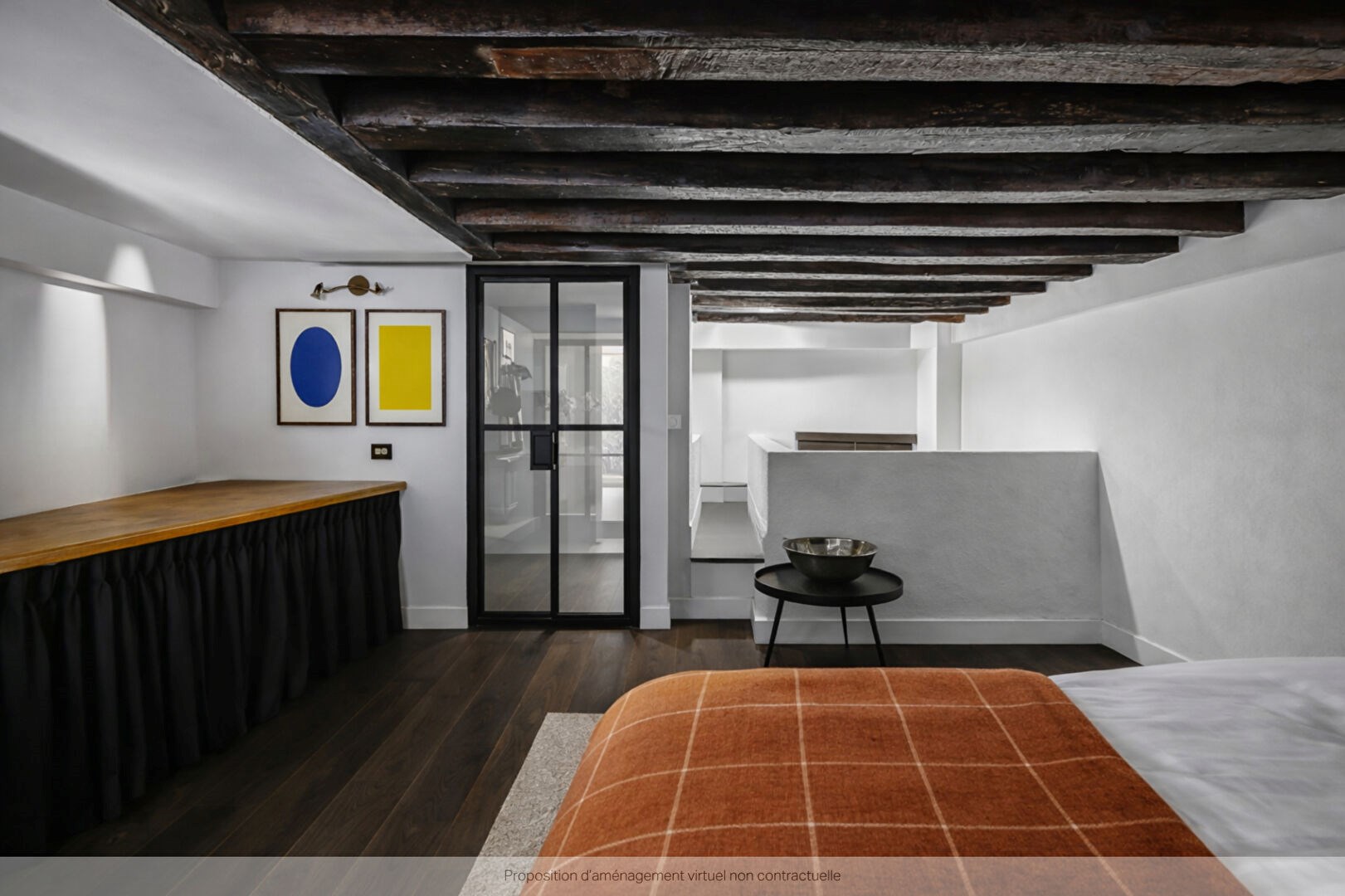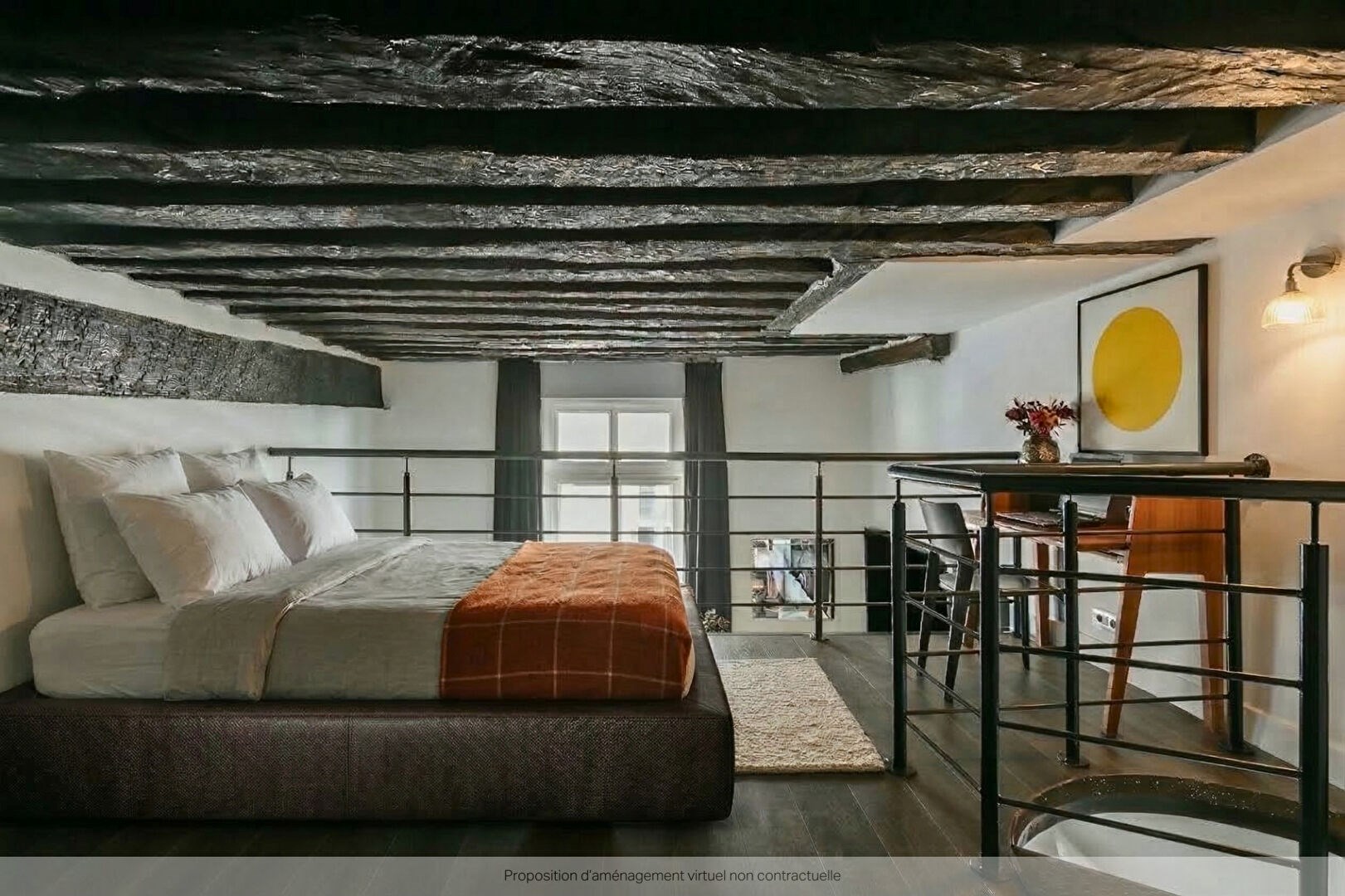 L'intérieur offre par endroits une belle hauteur sous plafond (jusqu'à 4 mètres) et de grandes fenêtres. Ensoleillé et particulièrement calme.